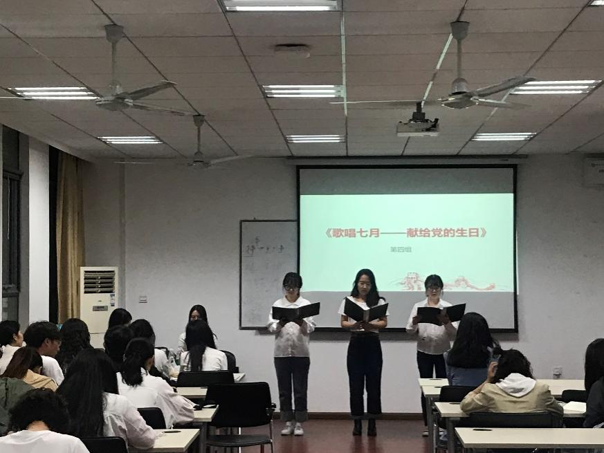 唱响红色经典,回顾我们党的光辉历程,一首首经典的诗歌是永远激励着我们前进的号角。活动最后,本科生党支部书记施俞辛对此次活动做了总结,激励同学们更好地学习党史、落实党的精神。此次活动,同学们通过前期的认真准备,对不同时期的党史有了更为深入的了解,在生动的演绎中,也更进一步汲取了自我修养的力量,激活了青春前进的动能。(文:曾颖 图:金涵嫣)