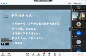 经过高考的洗礼,广大学子抱着对“象牙塔”的憧憬与渴望,来到这期盼已久而又陌生的环境。如何让这些刚入学的大一新生尽快适应大学的学习生活,是我们高校辅导员所面临的问题,也是辅导员工作是否能够顺利开展下去的基础。10月7日晚,人文学院召开了“拾愿启航——巧用’加减乘除’走好大学路”公开月讲评,辅导员聂小芳主讲,2021级全体本科生线上参加。