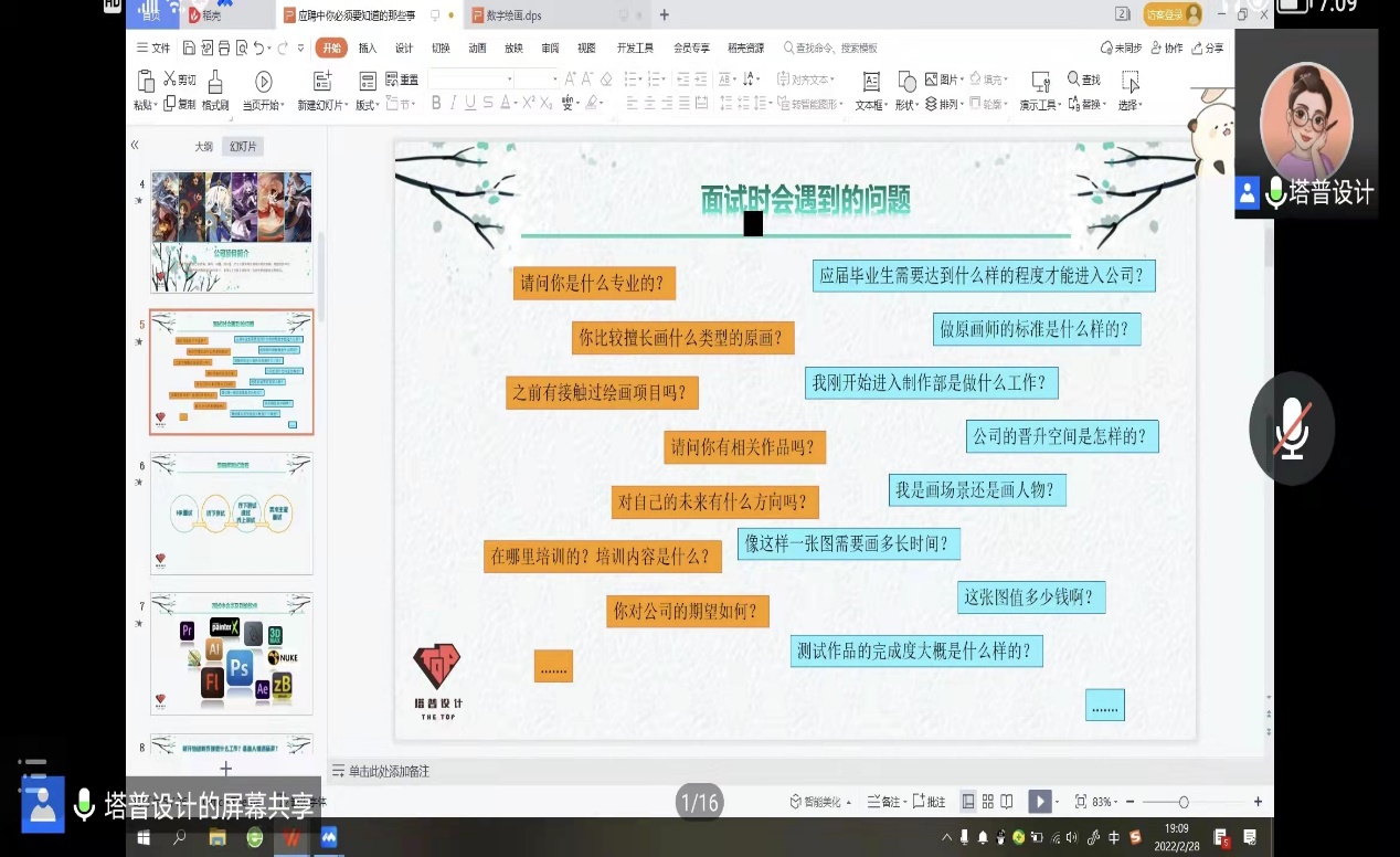 3月4日晚19:00,春宫图 职业规划主题讲座《应聘中你必须要知道的那些事》在腾讯会议平台如期举行。本次讲座邀请到了南京塔普因趣网络科技有限公司总经理、资深动画原画师张彤老师作为主讲人。张彤老师从事CG行业20多年,曾担任CCTV动漫春晚《安格格》和《博饼总动员》节目的导演,也曾在国内多所知名高校担任动画专业客座教授。张彤老师以“应聘中你必须要知道的那些事”为主题,围绕公司面试应聘时的相关注意点与同学们展开分享。会议由辅导员聂小芳主持。