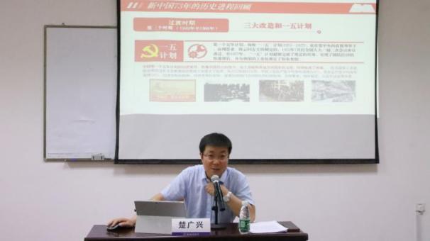 随后,楚广兴作了题为“当代大学生的历史使命与时代担当”的专题党课,带领大家回顾了新中国建国73年以来的历史进程,从这段厚重的历史中总结出了中国共产党执政的经验启示。通过讲述当代大学生的历史使命,他对同学们寄予了深切的期望,希望同学们能进一步学习贯彻习近平总书记在中国人民大学考察时的重要讲话与在庆祝中国共青团成立100周年大会上的讲话精神,传承红色基因、追逐蓝色梦想,牢记初心使命、把握正确方向,将推进党的事业作为理想,融入人文学子的情怀,肩负起青年学生的责任和担当。(文:黄嘉乐、施俞辛;图:黄嘉乐)