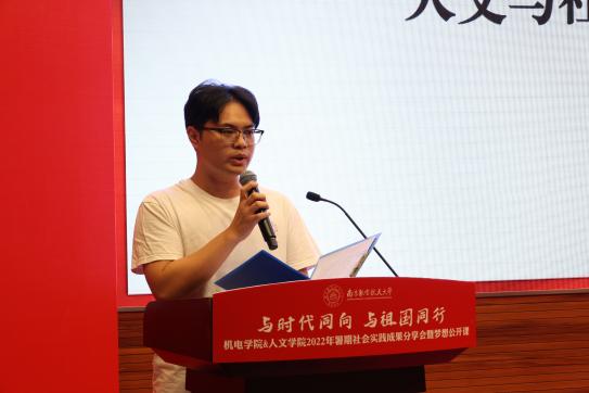 在“践行青年使命,谱写奋斗华章”篇章,机电和人文青年在一次次的实践中增长了才干,收获了成长,更积蓄了前行的力量。机电学院“先锋计划——高新技术企业行”团队队员、硕士研究生王晓伟讲述了自己走访多家国防科研院所及高新技术企业后的收获与感悟;机电学院“南京市盲人出行与导盲犬使用状况调研”团队队员、本科生王蔚讲述了自己大学三年中8次参与社会实践的感悟,用专业知识指导实际行动,用实际行动践行青年担当。