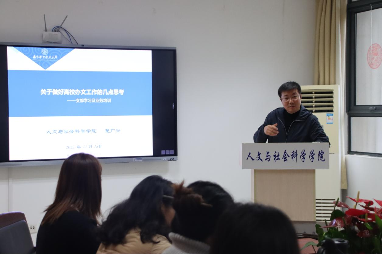 在业务培训环节,针对学院机关办文工作,楚广兴从总体认识、写作规范、注意事项及心得体会、意见建议等方面,分享了办文工作的相关经验技巧及个人的几点思考。他鼓励参会师生要敢于提笔、勤于下笔、善于用笔,从端正态度、知晓规范、明晰思路、修改完善、提炼内功、端正文风等方面扎实提高办文基本功,有效提升个人综合能力与素养。