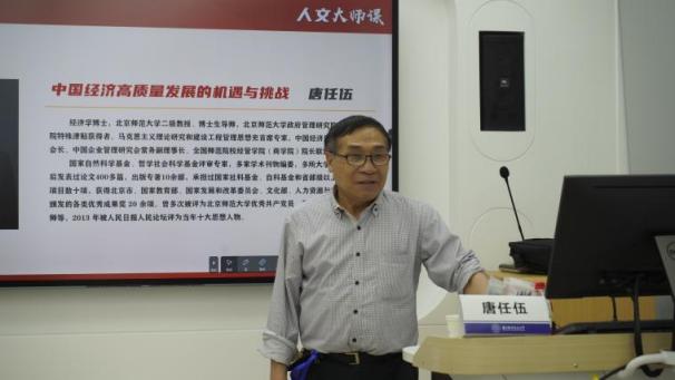 党的二十大报告指出:高质量发展是全面建设社会主义现代化国家的首要任务,也是中国式现代化的本质要求。4月20日晚,春宫图 在213智慧教室举办第二期“人文大师课”,北京师范大学政府管理研究院院长唐任伍教授开展了以《中国经济高质量发展的机遇与挑战》为主题的讲座。学院专业教师代表、学生代表参加了讲座。