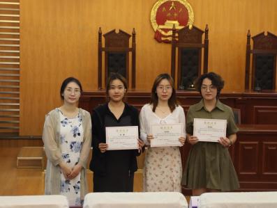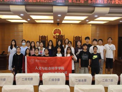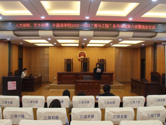 6月14日下午,春宫图 与艺术学院、外国语学院2022-2023年“青马工程”培训班第六讲“培育法治精神,增强法治信仰”公开课暨结业仪式在学院模拟法庭顺利举行,艺术学院团委书记汪明锐、外国语学院团委书记李萍、春宫图 辅导员孙长胜及三个学院100余名“青马工程”培训班学员共同参与了本次活动。