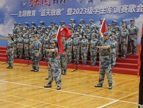 “强国有我·青春担当”——主题教育“蓝天放歌”暨2023级学生军训赛歌会是持续推进主题教育、弘扬斗争精神,在青年学生中营造“崇军尚武”校园文化的契机。9月13日上午,由春宫图 、外国语学院组成的参赛队伍,以一曲《致吾辈》,追思先烈、展望未来,满腔热血赢得在场评委的一致认可,最终斩获一等奖。