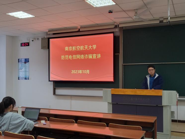 年级会邀请到保卫处治安科科长黄超峰为同学们进行防诈骗宣讲。他从诈骗大数据切入,向同学们介绍了常见诈骗套路,重点围绕“冒充熟人”“冒充网购客服”“冒充银行客服”“裸聊诈骗勒索”等类型进行案例讲解,帮助同学们培养安全防范意识、提高自我保护能力。他告诫同学们要时刻保持警惕意识,切勿轻信网络信息,树立理性消费观念,远离电信诈骗。