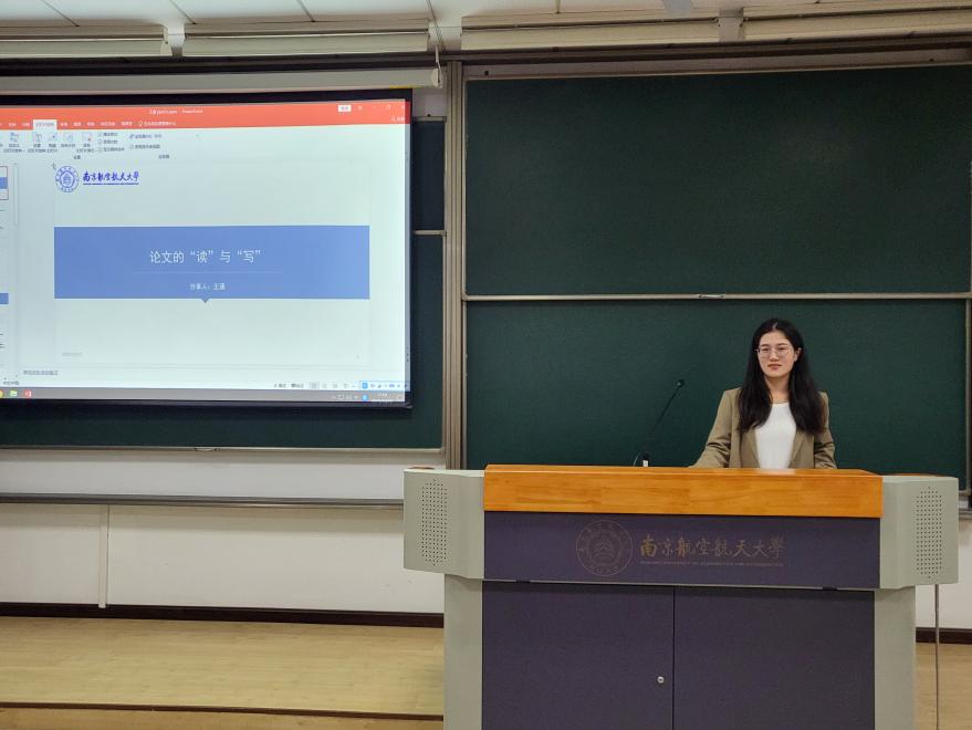 会上,2020级本科生王思捷分享了她参与创新创业赛事时,在选题策划、组建团队、准备方案等方面的经验,鼓励同学们勇于尝试和创新;2021级硕士研究生王涵从“文献阅读方法”和“论文写作要点”切入,介绍了开展有效文献调研、确定科研课题的方法,鼓励低年级同学们在研究中积极探索创新。