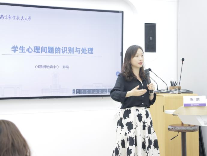 陈瑜结合学校学生心理测试的结果,介绍了几种常见心理问题的具体表现以及学生心理问题的识别方式。她强调,要从身体、情绪、认知和行为四个方面的表现来识别心理危机,同时要关注言语和行为上的征兆。随后,她介绍了学生心理问题的处理方法,提醒班主任和辅导员要深入了解学生的心理动态,科学识别学生的心理问题,以学生群体的不同分类为标准,在日常工作中有针对性地采取干预措施,分级展开教育与干预。