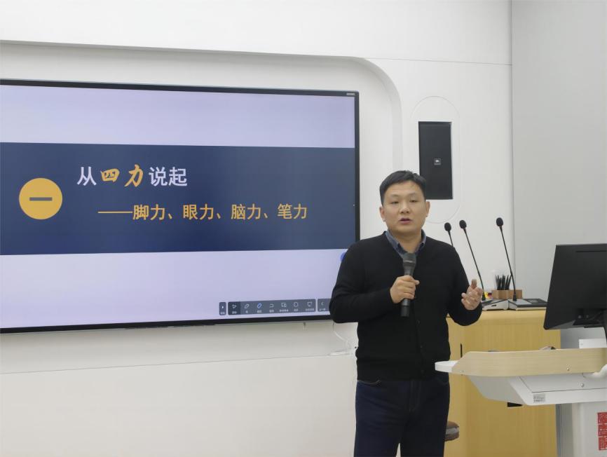 第二阶段由王伟给大家开展了题为《提升四力,融合传播——新闻宣传工作实务培训》的专题培训。他结合自身工作经历及学校官微推送背后的故事,介绍了新闻撰写的方法和注意事项,深入分析当前新闻宣传工作的重要性,启发大家挖掘生动故事,用心发现,反映实事,不断增强“脚力,眼力,脑力,笔力”。