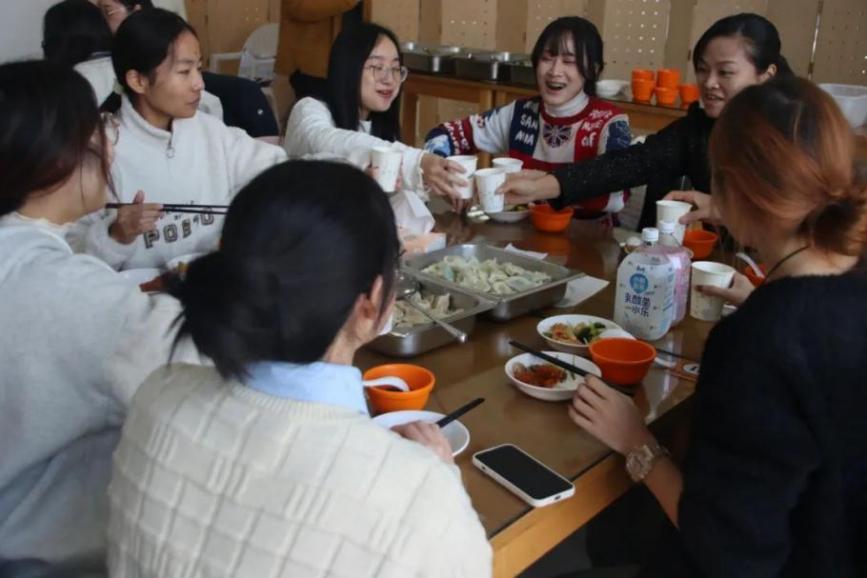 师生们面对面沟通、心与心交流,互相诉说一整年的收获与喜悦。薄薄的饺子皮包裹着厚实的温暖,大家在严寒的冬日感受着集体的温暖与关怀。