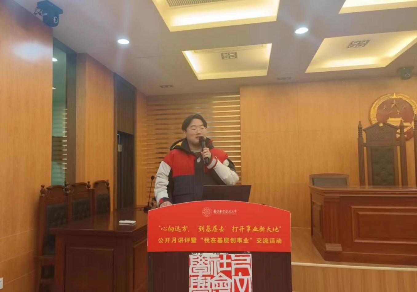 模拟法庭举行。院党委副书记刘思辰以及2022级、2023级本科生共同参加,月讲评由本科生辅导员聂小芳主讲。