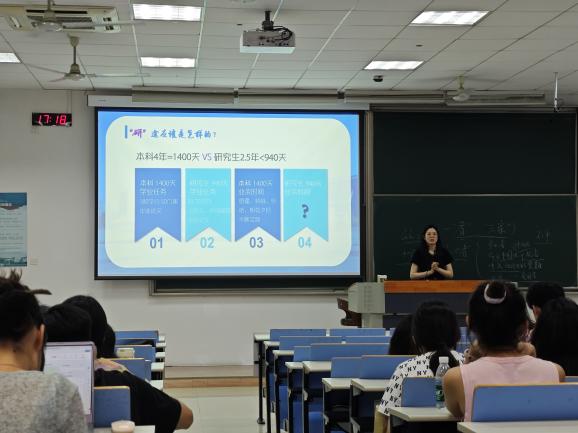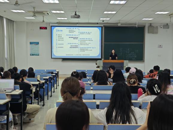 施俞辛从研究生培养时间轴入手,介绍了研究生日常事务,提醒同学们要认真对待课程学习。以理想信念、校史校情、学术道德、心理健康、安全教育、保密条例为模块,解读了学院2024级研究生新生入学教育开展计划,旨在帮助大家尽快熟悉、适应研究生阶段的学习、生活。