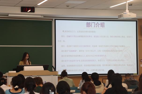 此次招新活动共包含部门宣讲、面试选拔、素质拓展三个环节。各部门代表通过现场展示、视频介绍等形式,详细阐述了各自的职能、特色以及新学年工作计划。宣讲会现场气氛热烈,新生怀揣着对团学组织的热情,积极报名参加了面试。
