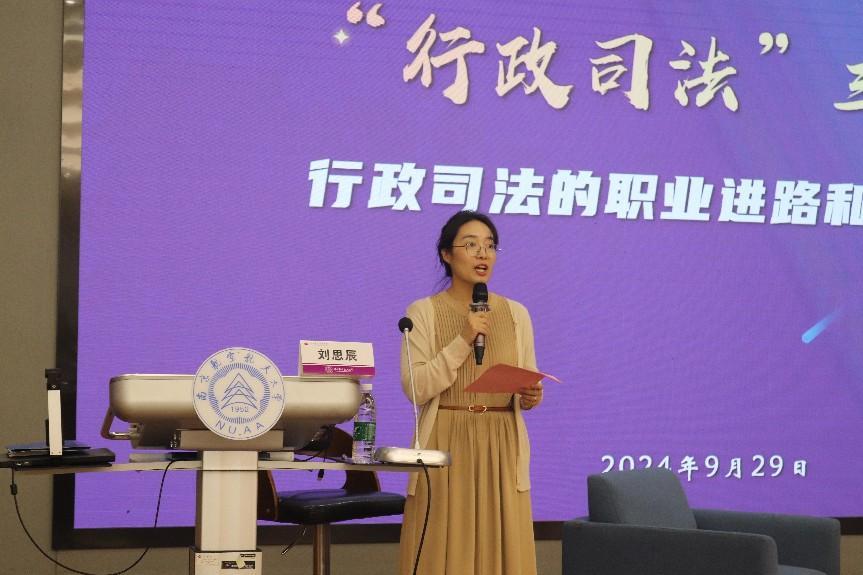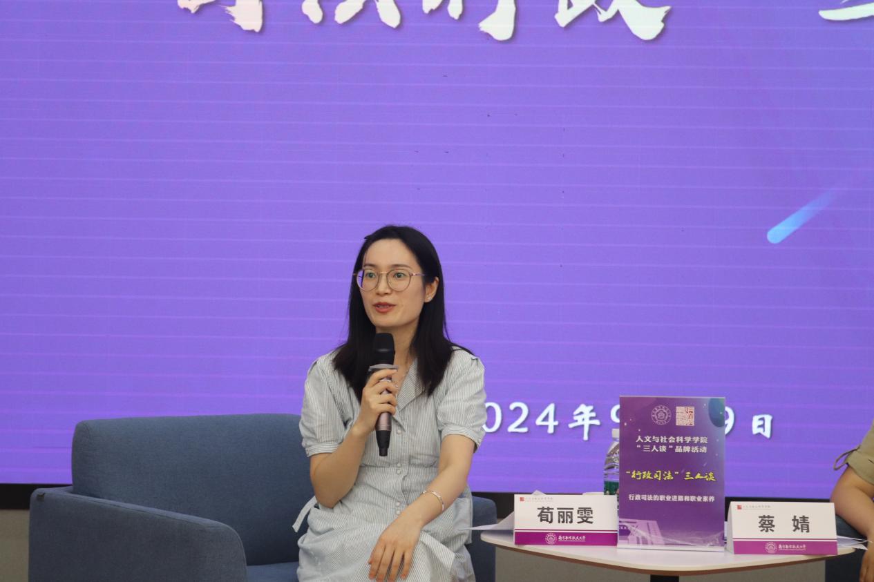 9月29日下午,春宫图 在天目湖校区巡天楼二楼报告厅举行职业规划“司法行政三人谈”品牌活动。溧阳市司法局复议应诉科科长荀丽雯、溧阳市司法局政治处主任蔡靖作为嘉宾参加活动,活动由学院党委副书记刘思辰主持。