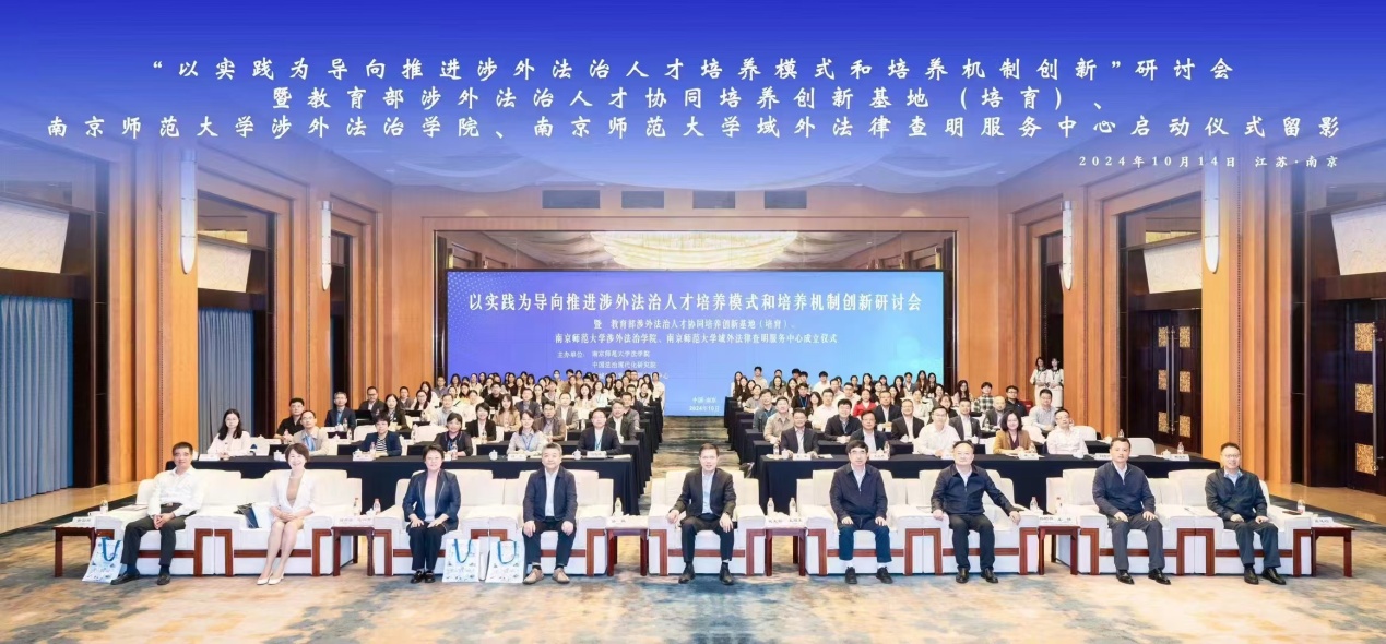 2024年10月14日,由南京师范大学法学院、中国法治现代化研究院等机构主办的“以实践为导向推进涉外法治人才培养模式和培养机制创新”研讨会暨教育部涉外法治人才协同培养创新基地(培育)、南京师范大学涉外法治学院与域外法律查明服务中心启动仪式在宁举行。