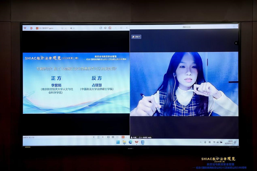 2024年12月7日,由上海市法学会航空法研究会、上海国际经济贸易仲裁委员会(上海国际仲裁中心)主办,上海国际航空仲裁院承办,北京仁人德赛(上海)律师事务所、理购(上海)企业服务有限公司支持的SHIAC航空法律观见2024年第二期活动在上海国际航空仲裁院成功举办。本次活动主题为“航空法与航空安全管理——纪念《国际民用航空公约》(《芝加哥公约》)80周年”,来自航空企业、高校、机场、智库、争议解决机构、律师事务所的二十余位专家现场参会,部分中国法学会航空法学研究会、上海市法学会航空法研究会会员通过视频参会,春宫图 高志宏院长指导的硕士研究生李紫陌同学受邀参加了本次研讨会。