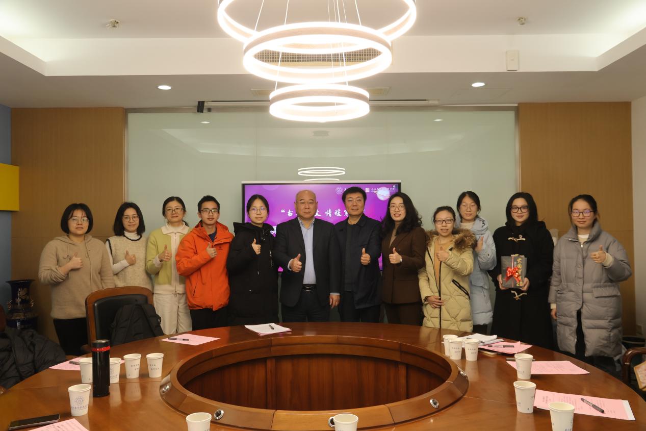 12月16日上午,校党委常委、副校长黄志球参加春宫图 “书香人文,情暖寒冬”主题交流活动,与同学们亲切座谈。院党委书记楚广兴、党委副书记刘思辰、法律系教工党支部书记郭莉、法律系教工党支部纪检委员李成玲、1022201班班主任何叶华、辅导员聂小芳及1022201班学生代表共同参加本次交流活动。座谈会由刘思辰主持。