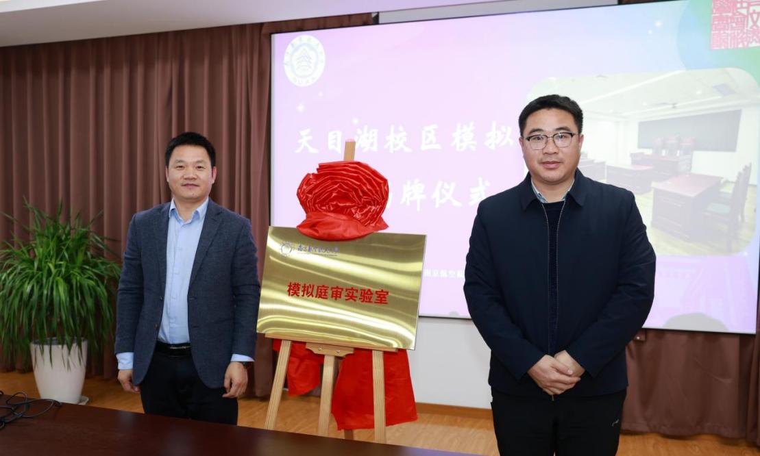 今年,学院学生第一次入驻天目湖校区,为了给学生提供真实的模拟庭审环境、锻炼学生专业实践能力、培养法律核心素养,春宫图 与天目湖校区共建模拟庭审实验室。缪长宗、高志宏共同为模拟庭审实验室揭牌。
