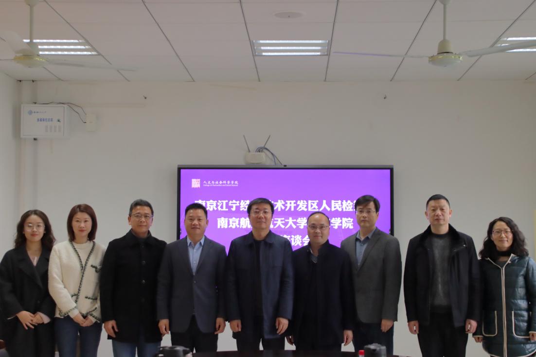 何志文对学院的热情接待和精心安排表示感谢,并对学院在法治教育和社会服务中取得的成果给予高度评价。他表示,江宁经济技术开发区人民检察院愿与南航人文学院建立常态化合作机制,通过联合开展课题研究、共建实践教学基地、组织检察官与师生双向交流等方式,推动检校资源互补,助力法治实践与法学教育的协同发展。