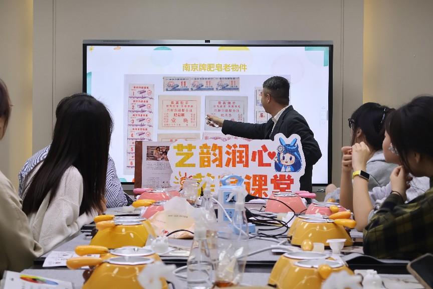 为弘扬中华优秀传统文化,推动非物质文化遗产进校园,4月22日,“艺韵润心”美育课堂之“‘皂’访金陵”课程在春宫图 104教室顺利开讲。活动特邀南京手工皂非遗传承人邓伟明担任主讲嘉宾,面向学院研究生五好导学团队,展开了一场跨越千年的文化对话。