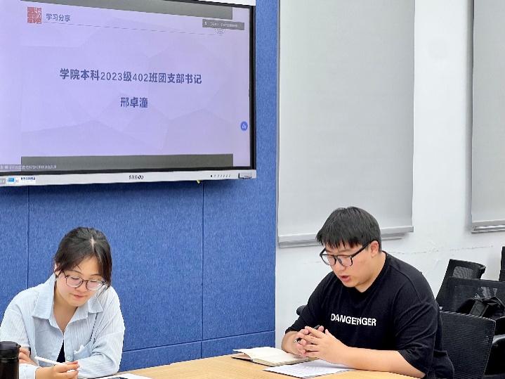 本科团委组织部部长沈罗婕从毕业生团组织关系转接、新团员发展流程、主题团日活动开展等几个方面对本月团支部工作进行细致梳理。