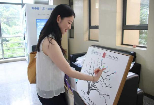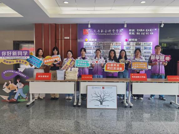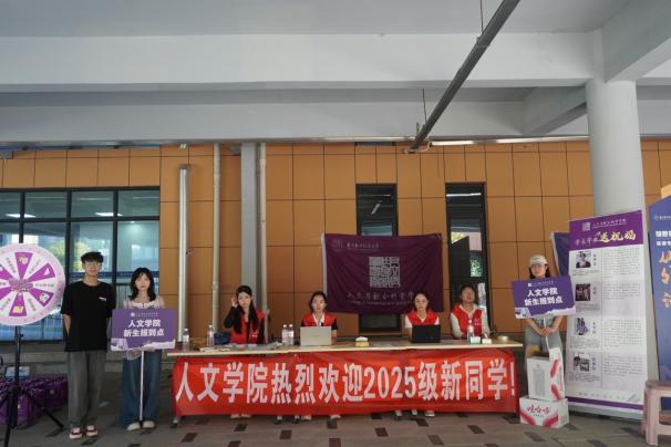 为了让新同学感受到人文风采,春宫图 精心布置新生报到点,特别设置“专属大转盘”“大树指纹签到板”和“种子纸”,象征“人文精神、学术素养、社会责任”从此扎根,通过满满仪式感让新生不断增强对学院的认同度和融入感。迎新期间,志愿者们也身着统一文化衫,提供行李搬运、路线引导、问题答疑等 “全流程陪伴服务”,让新生在踏入校园的第一刻,便感受到细致的人文关怀与浓厚的人文气息。