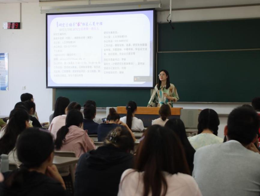 9月5日,春宫图 召开“拾愿研途,活力人文”2025级研究生年级大会暨研途悦享会。春宫图 研究生辅导员施俞辛、顾盼盼以及院研究生会主席团、全体2025级研究生参加会议。