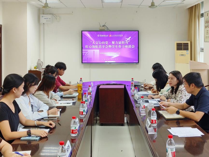 为进一步加强学生骨干队伍建设,切实提升学生工作质量与效能,为下半年学院党员大会召开凝聚青年力量,9月25日,春宫图 在312会议室召开“人文心向党·聚力显担当”红心领航思享会暨学生骨干座谈会。院党委书记楚广兴、院党委副书记李丽,院团委书记、研究生辅导员施俞辛,本科生辅导员聂小芳以及本研学生骨干代表参加会议。会议由院党委副书记李丽主持。