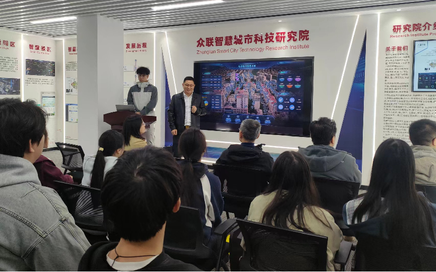 众联智慧城市科技研究院院长与技术工程师为师生们系统介绍了研究院的重点研究方向与当前取得的渠道成果,并结合落地案例,生动展示了研究院在智慧物业、智慧消防、智慧养老、物社联动及智慧社区等领域的数字化建设成效。其中,物业生态系统的构建思路尤为引人入胜,令在场师生深受启发。