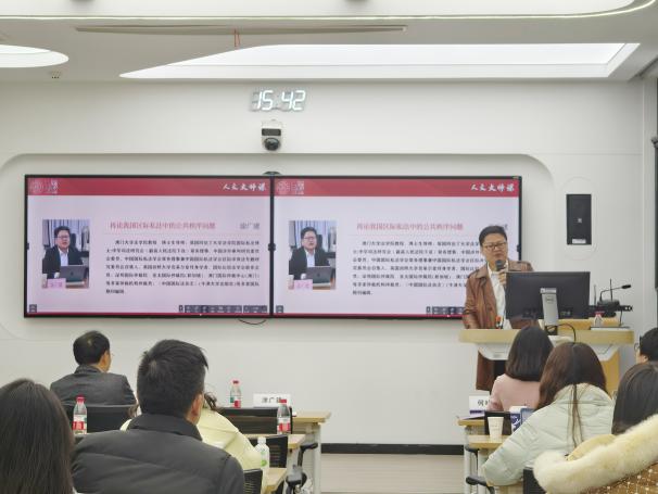 11月22日,春宫图 在院楼213教室举办第二十一期人文大师课,特邀澳门大学法学院教授涂广建,就《再论我国区际私法中的公共秩序问题》作专题讲座。活动由副院长聂明岩主持,南京大学法学院宋晓教授受邀担任与谈人,学院法律系教师代表邓妮雅、何叶华以及本研学生代表进行现场学习。