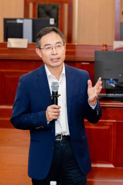 杭育新对本次模拟庭审大赛的成功举办和选手们的精彩表现给予充分肯定,并结合“意识”“理性”“责任”三个关键词提出要求:法治水平是社会进步的重要标志,青年学子应深刻领会法纪的时代意义,牢固树立法纪意识;要保持理性,敬畏法纪,严守纪律规矩红线,在求学与未来从业道路上始终保持清醒认知,坚守职业操守,做到心有所畏、言有所戒、行有所止;法治建设离不开全社会的共同参与,每个人都应增强社会责任感,锤炼专业本领,守好法律底线,为法治中国建设贡献力量。他表示,本次模拟庭审大赛既是一场生动的法治课,也是一场引导学生行稳致远的思政课,希望学院能持续打造好模拟庭审大赛品牌,让更多师生从中受益,在实践中坚定理想信念、涵养法治素养,走好人生成长之路。