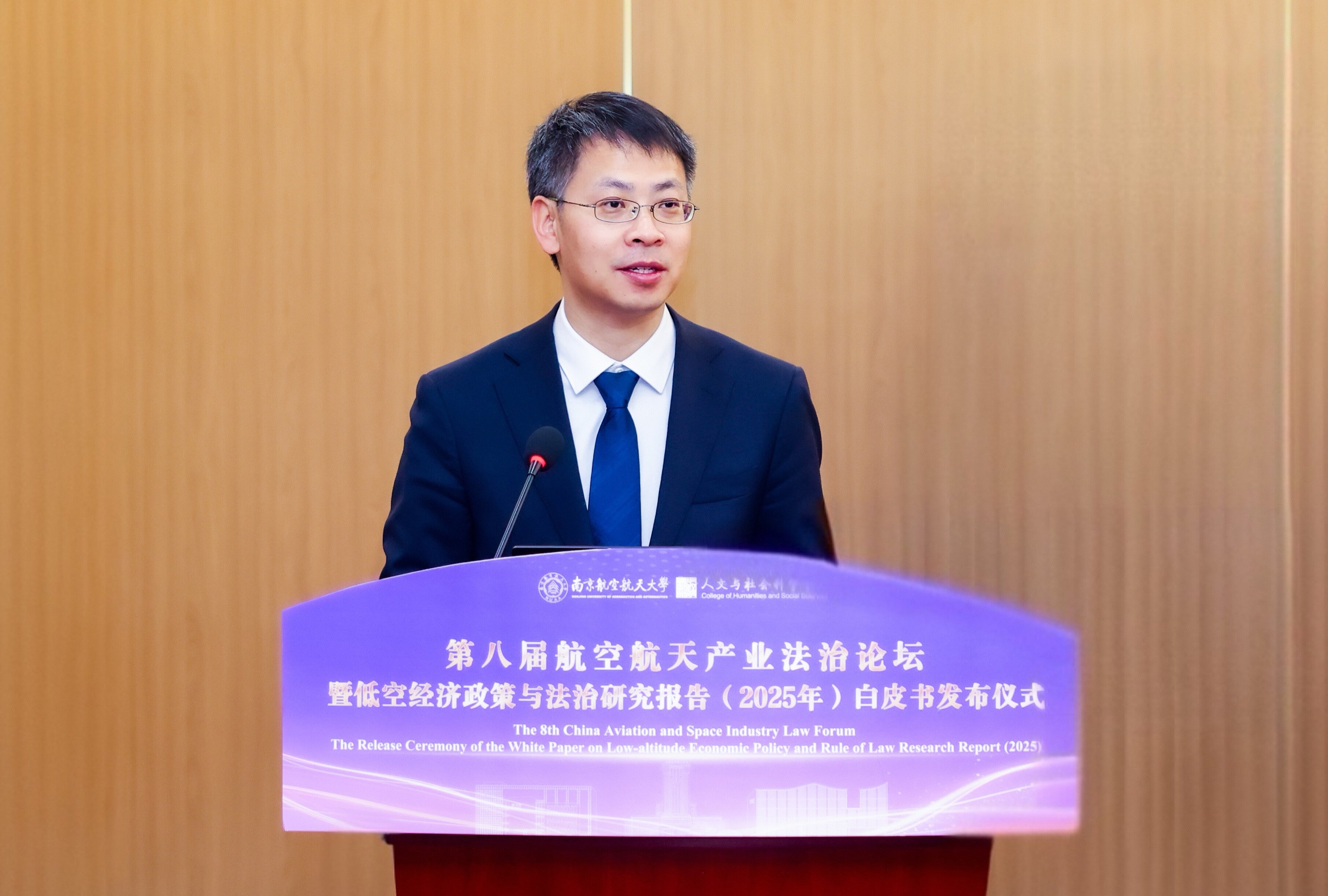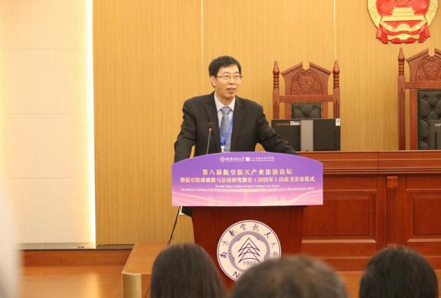 校长助理潘时龙教授为开幕式致辞,对与会嘉宾表示欢迎与感谢。他回顾了论坛发展历程,强调法治建设对航空航天产业及低空经济的引领作用,并介绍了学校在相关领域的布局与成果,期待与会嘉宾深入研讨、贡献智慧。